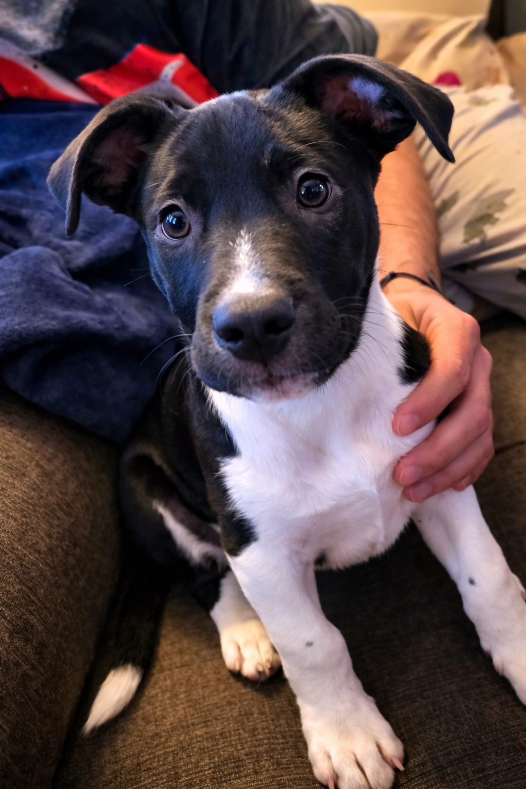 When playtime winds down, this sweet boy is more than happy to curl up near his people. He may act like a tough little champ during the day, but underneath it all is a puppy who just wants to be loved.