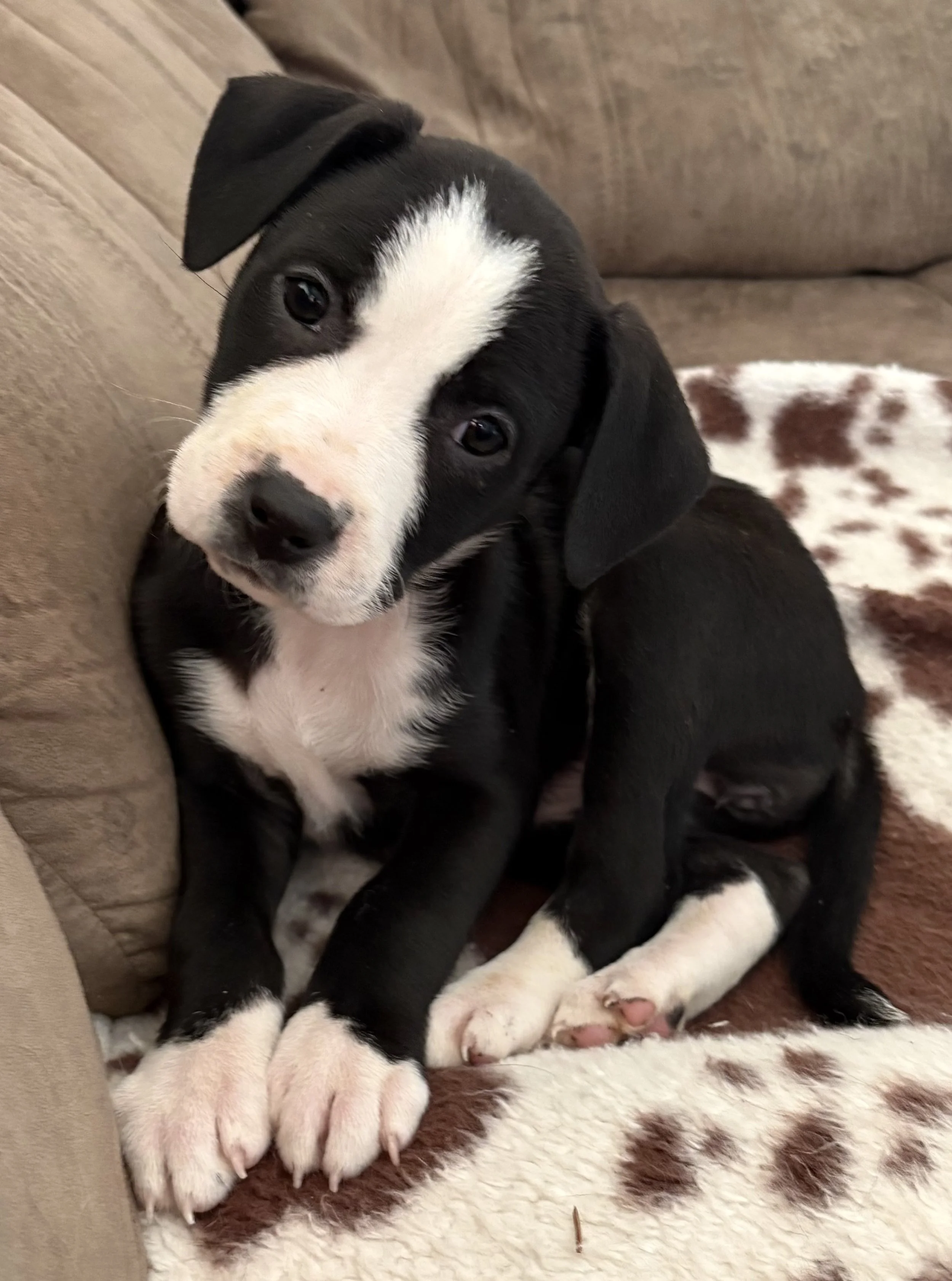 At 12 weeks old, this Boxer mix is equal parts athlete, comedian, and loyal best friend in training. Rocky has that classic Boxer curiosity — he absolutely has to know what you’re doing at all times. Making dinner? He’s supervising. Folding laundry? He’s diving in to help. Walking from room to room? Congratulations, you now have a shadow. 🐾