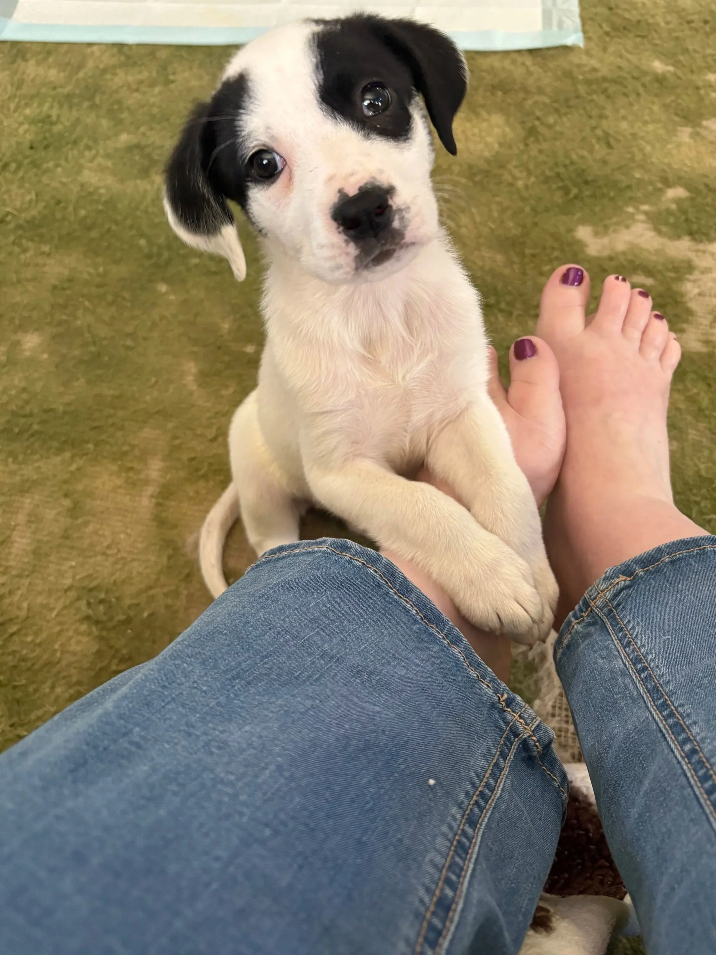 Once she’s had her playtime, Clover naturally seeks out connection. She loves to curl up next to you, relax, and soak up all the affection she can get. She’s a very people-oriented puppy who enjoys being close and part of everyday life.