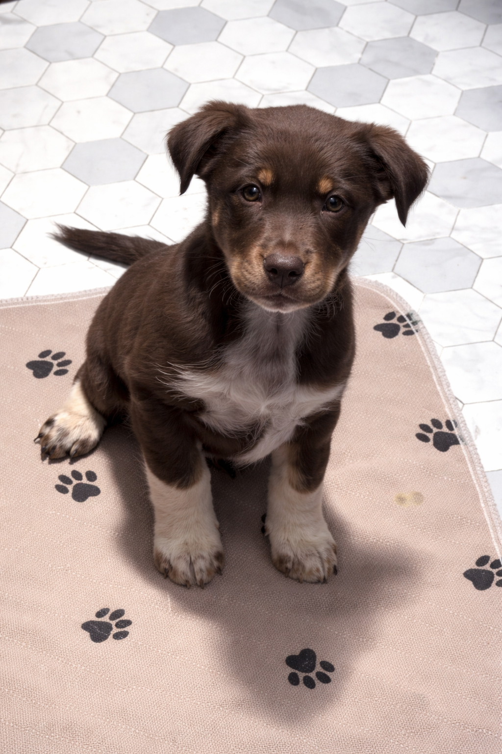 Patch has been well socialized and does wonderfully with other dogs, cats, and children. He is content in his kennel when needed and is already working on important puppy skills including potty training, leash training, and basic commands. For his age, he is attentive, responsive, and clearly enjoys learning — especially when it means spending time with his humans.