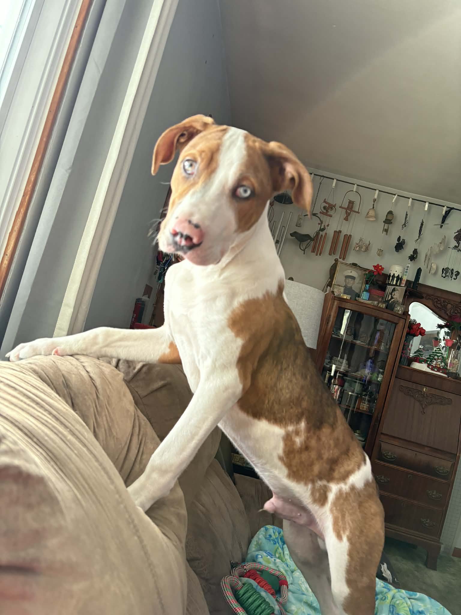 Age: 23 Weeks Old • Male • Catahoula x Pittie MixRoman is the kind of puppy who seems to carry sunshine wherever he goes. With one warm honey-brown eye and one striking icy-blue eye, he has a presence that immediately captures attention. People stop in their tracks to admire him — and Roman, with his joyful grin and playful confidence, is happy to greet every admirer.