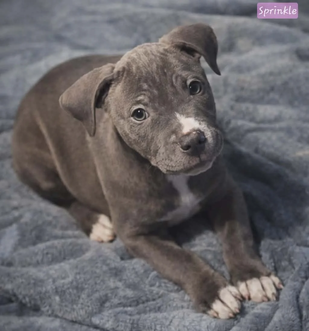 Sprinkle is absolutely stunning with her gorgeous blue coat, but it’s her personality that truly steals the show. She has a mild energy level, which makes her a wonderful mix of playful puppy and snuggly companion. Sprinkle enjoys playing with toys, exploring her surroundings, and spending time with the people around her. After a little fun, she’s more than happy to sit still and soak up all the love and attention you’re willing to give.