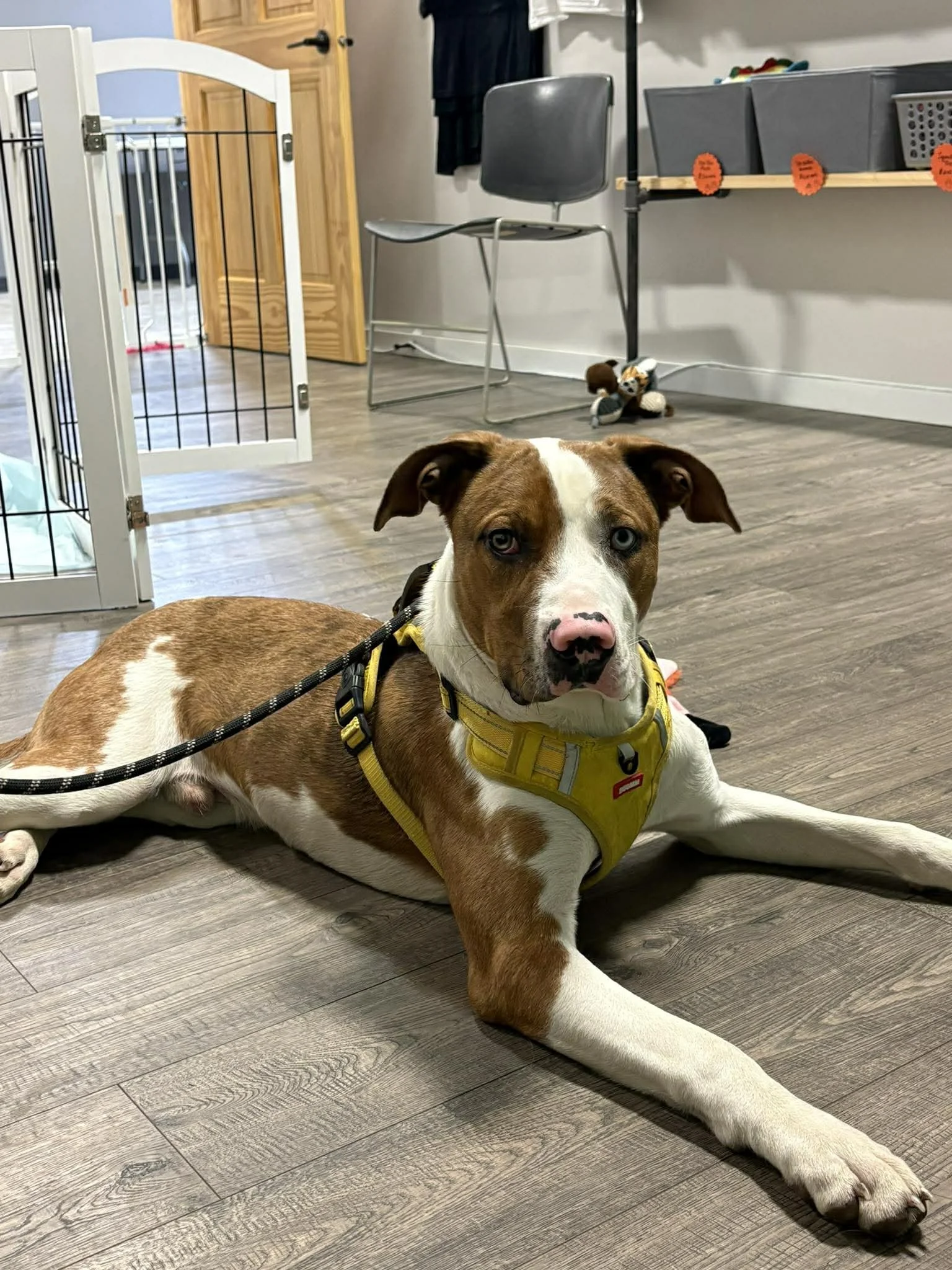 She does well in her kennel and is making excellent progress with potty training, leash training, and learning basic commands. Moon is very treat motivated, which makes training both effective and enjoyable. She is eager to learn and responds well to positive guidance and consistency.