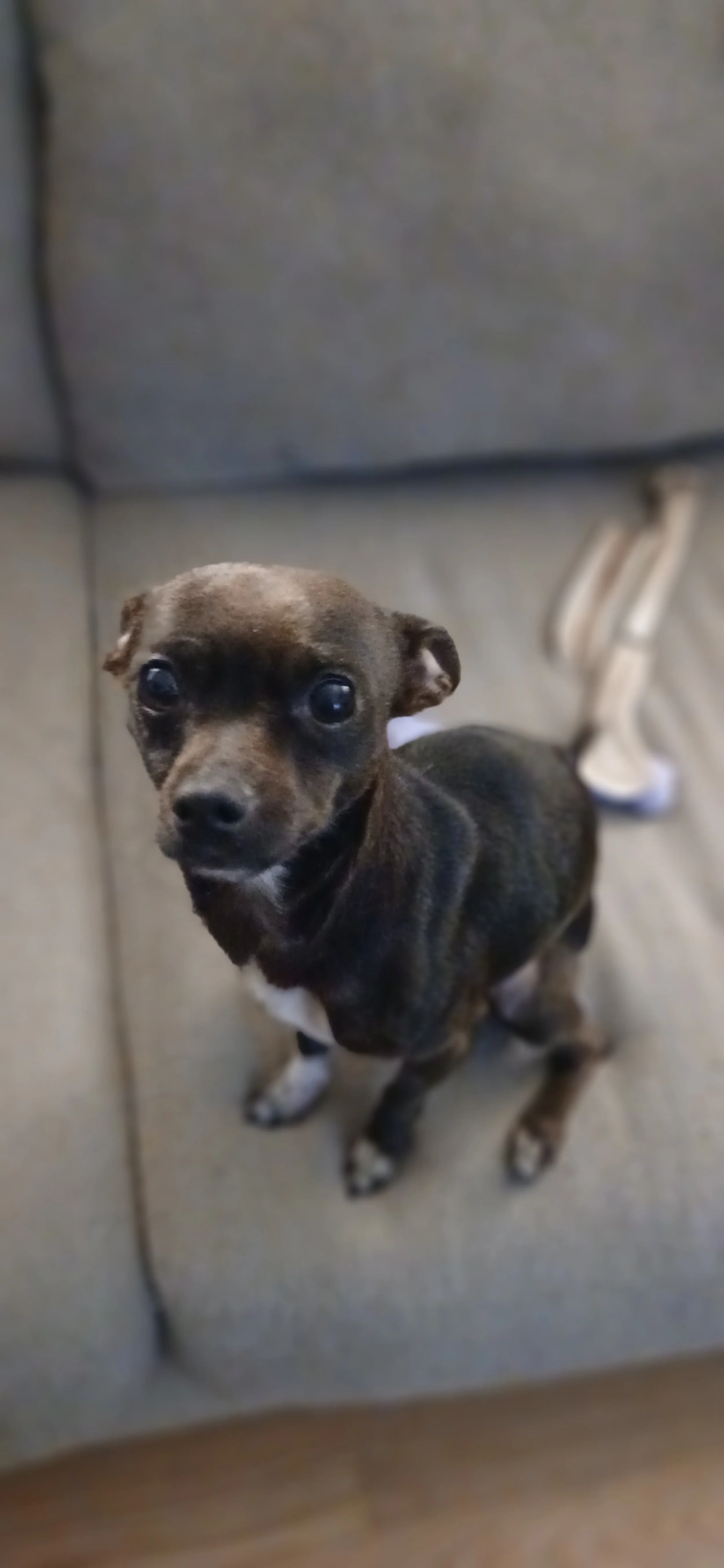 Age/Breed: 2 years old / Chihuahua (7 lbs)Meet Cosette, our very own leading lady of Les Muttérables! This tiny starlet may be small in size, but her heart and personality could fill a theater. She’s not your typical Chihuahua—Cosette is one of a kind, winning hearts wherever she goes.